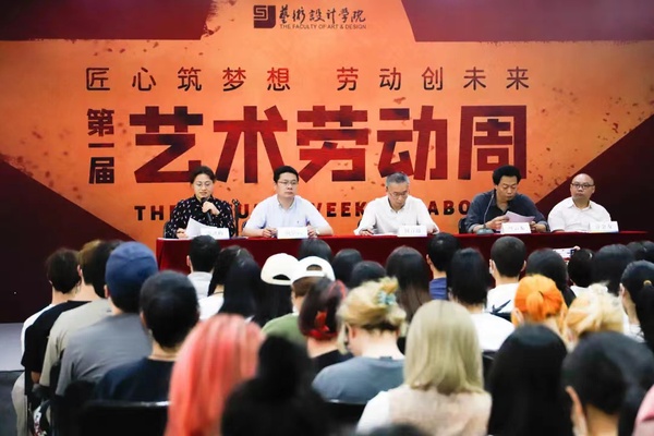 4月25日,艺术设计学院第一届劳动周开幕式在大学生活动中心举行,本次劳动周以“匠心筑梦想、劳动创未来”为主题。校党委委员、副校长何百通,艺术设计学院院长叶云龙、党支部书记戚景云、副院长许金友、党总支副书记范洪梅,21级全体学生参加开幕式。开幕式由叶云龙主持。