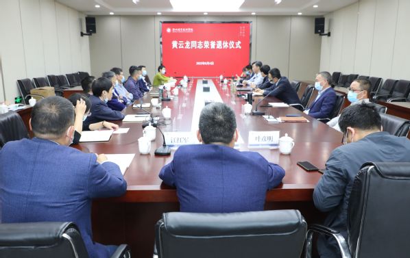 5月4日上午,我校原副校长黄云龙同志荣誉退休仪式在行政楼四楼会议室举行。校党委书记徐须实,校长吕延文,党委委员、副校长何百通、余建军,党委委员、宣传部长孔庆红,党委委员、组织部长周帅出席。