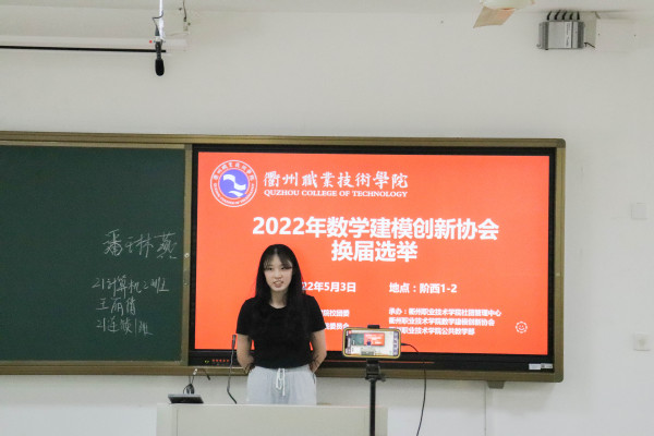 为进一步推进数学建模创新协会的发展,根据校团委、社团管理中心安排,在公共教学部的指导下,建模协会于2022年5月4日完成2022学年换届选举工作。根据疫情防控相关要求,本次选举采取钉钉线上投票+竞选人线下竞选演讲的方式进行。