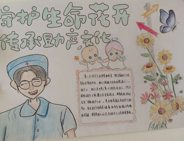 为庆祝助产士节的到来,同学们用画笔在纸上描绘出她们理想的助产士形象。手抄报向我们展现的不仅是他们对助产专业的认识和憧憬,更是他们对这个专业的热爱和坚持。