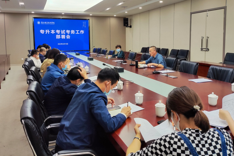 5月10日,浙江省2022年普通高校专升本选拔考试衢职院考点工作部署会在行政楼四楼会议室召开。学校党委委员、副校长何百通主持会议,学校党委委员、副校长徐浪静,宣传部、学工部、教务处、后勤保卫处等部门主要负责人,各二级学院院长、党总支副书记,考试工作专班成员参加会议。
