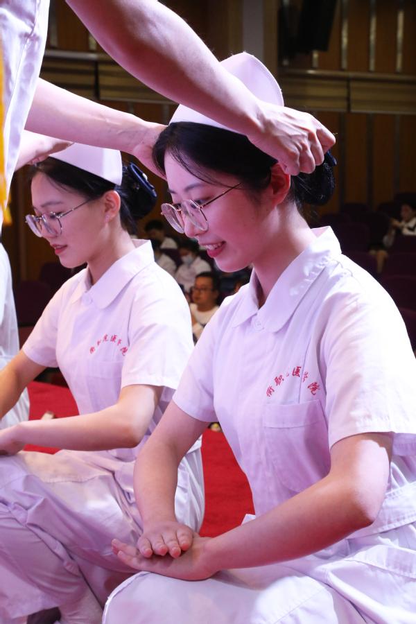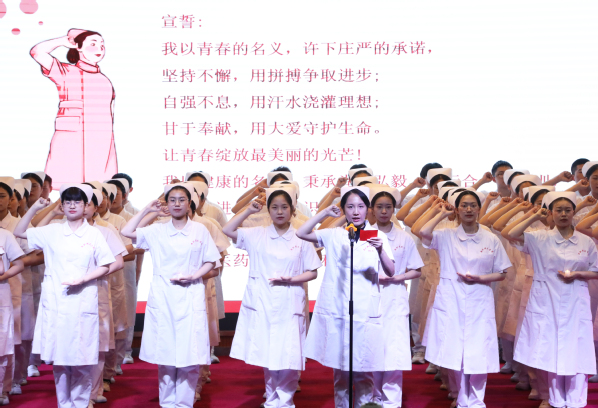 徐须实强调,新修订的《职业教育法》以法律的形式明确了职业教育是与普通教育具有同等重要地位的教育类型,不同赛道、同样精彩。他向未来的白衣天使们提出三点希望。一是坚守“职业精神”,做新时代奋斗者。希望同学们始终坚守“敬佑生命、救死扶伤、甘于奉献、大爱无疆”的职业精神,以更高的要求和自觉,向标兵看齐,向先进学习,做新时代的奋斗者。二是弘扬“抗疫精神”,做新时代奉献者。希望同学们弘扬“生命至上、举国同心、舍生忘死、尊重科学”的抗疫精神,牢记“平时保健康、战时保打赢”的职责意识,加强平时岗位锻炼,注重基础和专科护理技能的提升,努力当好白衣天使,时刻准备当好白衣战士,接过抗疫的时代责任,做新时代的奉献者。三是传承“匠心精神”,做新时代追梦者。希望同学们把医学院健康文化、天使文化精神根植于心,坚持“科学、守信、博爱、创新”,不断勤学苦练,努力提高专业技术能力,把医学院信念、价值、职业道德和精神风貌发扬光大,做努力追梦的优秀衢职人。