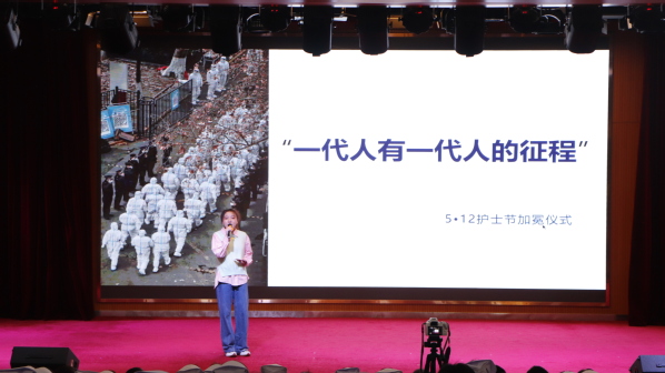 四省边际中心医院徐茗婕作为优秀校友做宣讲,鼓励学弟学妹们要传承南丁格尔精神,勇敢、坚强、担当,播撒爱的种子,坚守健康使命。