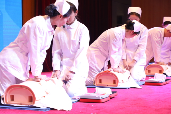 优秀的护士不仅需要丰富的理论知识,勇于奉献、敢于担当的工作态度,更少不了熟练的实操技能加持,省竞赛团队、护理专业学生进行CPR技能展示。