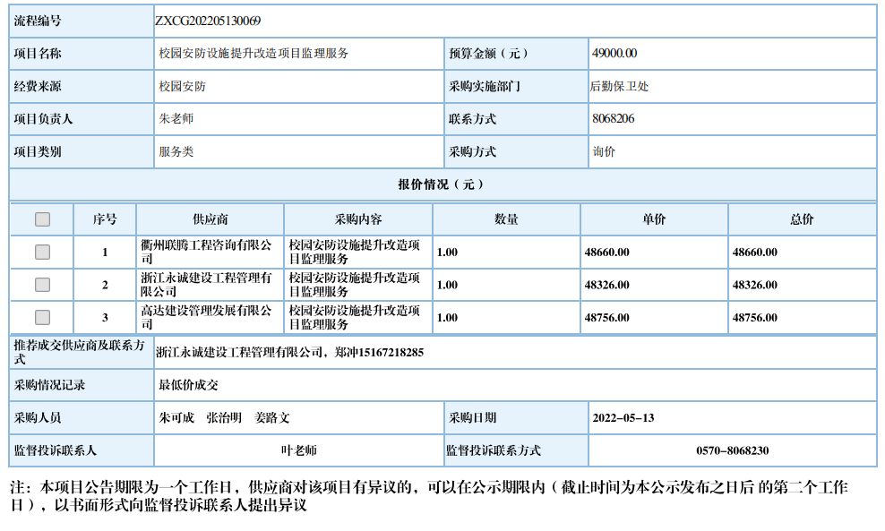 江南网页版校园安防设施提升改造项目监理服务自行采购信息公示