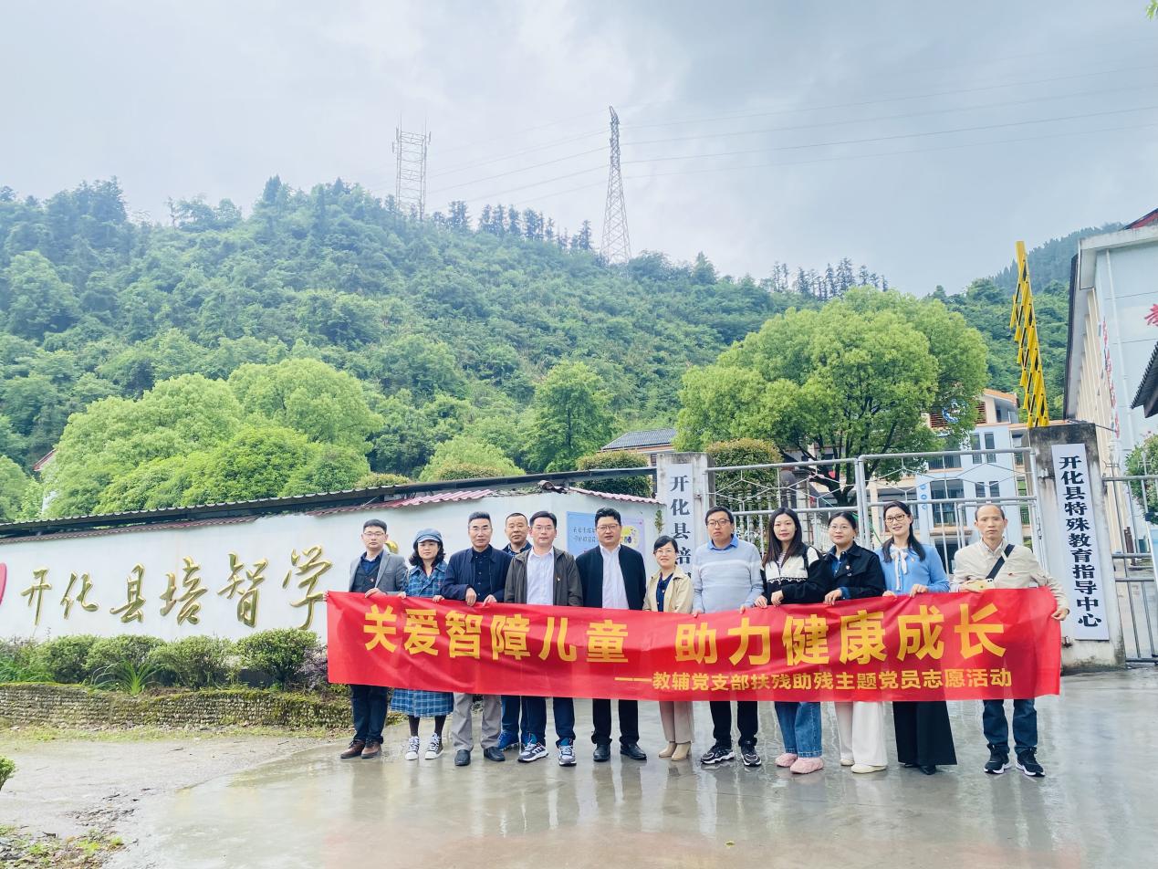 为培养党员积极关注社会,奉献社会的良好品质,充分发挥广大党员在志愿服务中的先锋模范作用,在2022年5月15日第三十二次全国助残日之际,教辅党支部全体党员及入党积极分子志愿者来到开化县培智学校,组织开展了以“关爱智障儿童 助力健康成长”为主题的党员志愿活动。志愿活动前,志愿者收集了培智学校69名智障儿童的“微心愿”,结合他们的实际情况,志愿者给小朋友精心准备了小礼物。活动中,志愿者在工作人员带领下,参观了培智学校教室和活动室等场地,了解了小朋友日常学习生活情况,并积极与小朋友进行互动交流,让他们感受到社会的关爱和温暖。