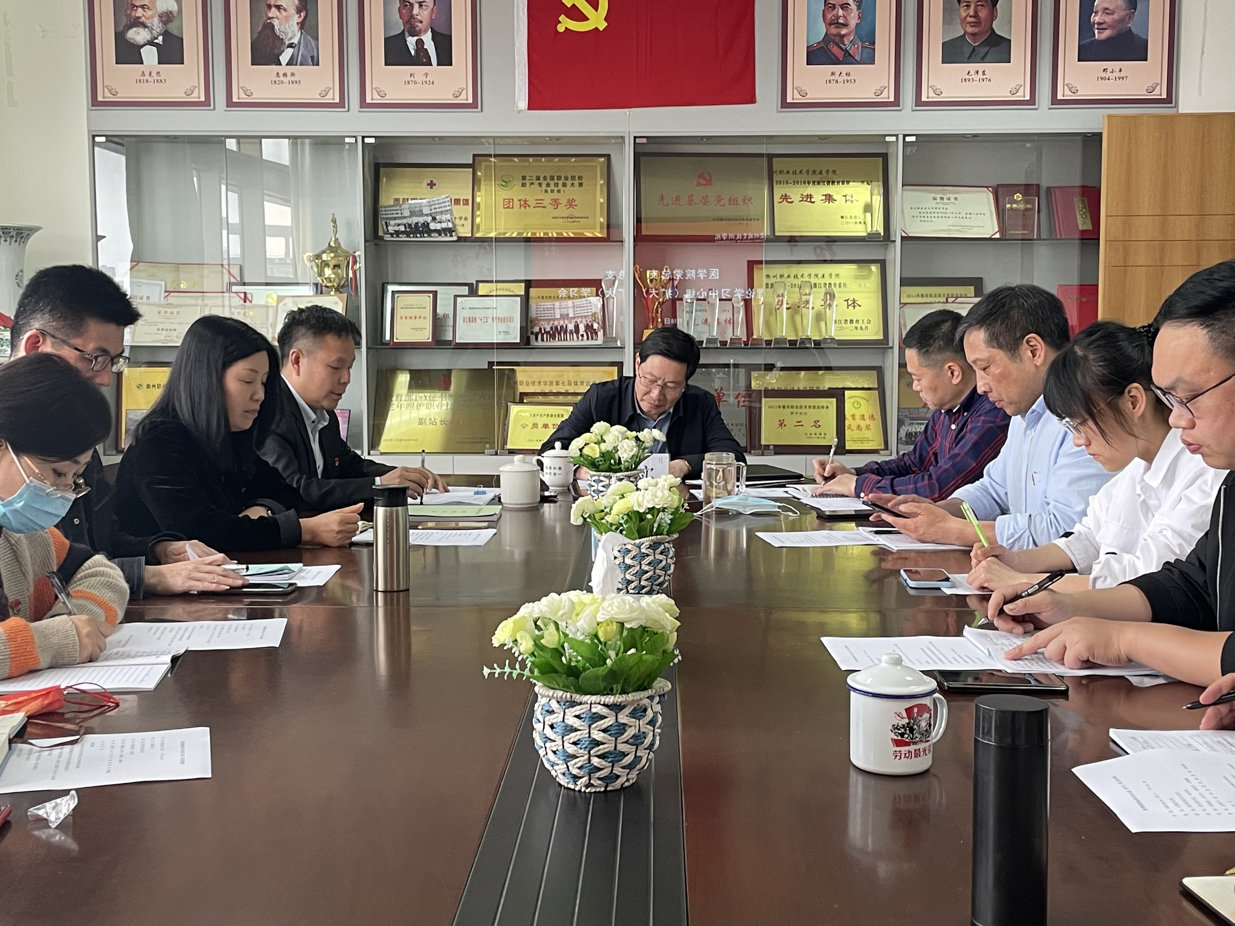 会议学习了习近平总书记在中国人民大学考察讲话精神、新修订的《中华人民共和国职业教育法》、市委、市政府《关于在全市开展“六治六提”作风建设》的文件精神。强调今年是学校党建提升年、管理质量年、双高攻坚年,请各党支部、教研室认真“对标,抓细、抓实”,将文件精神传达学习到位。