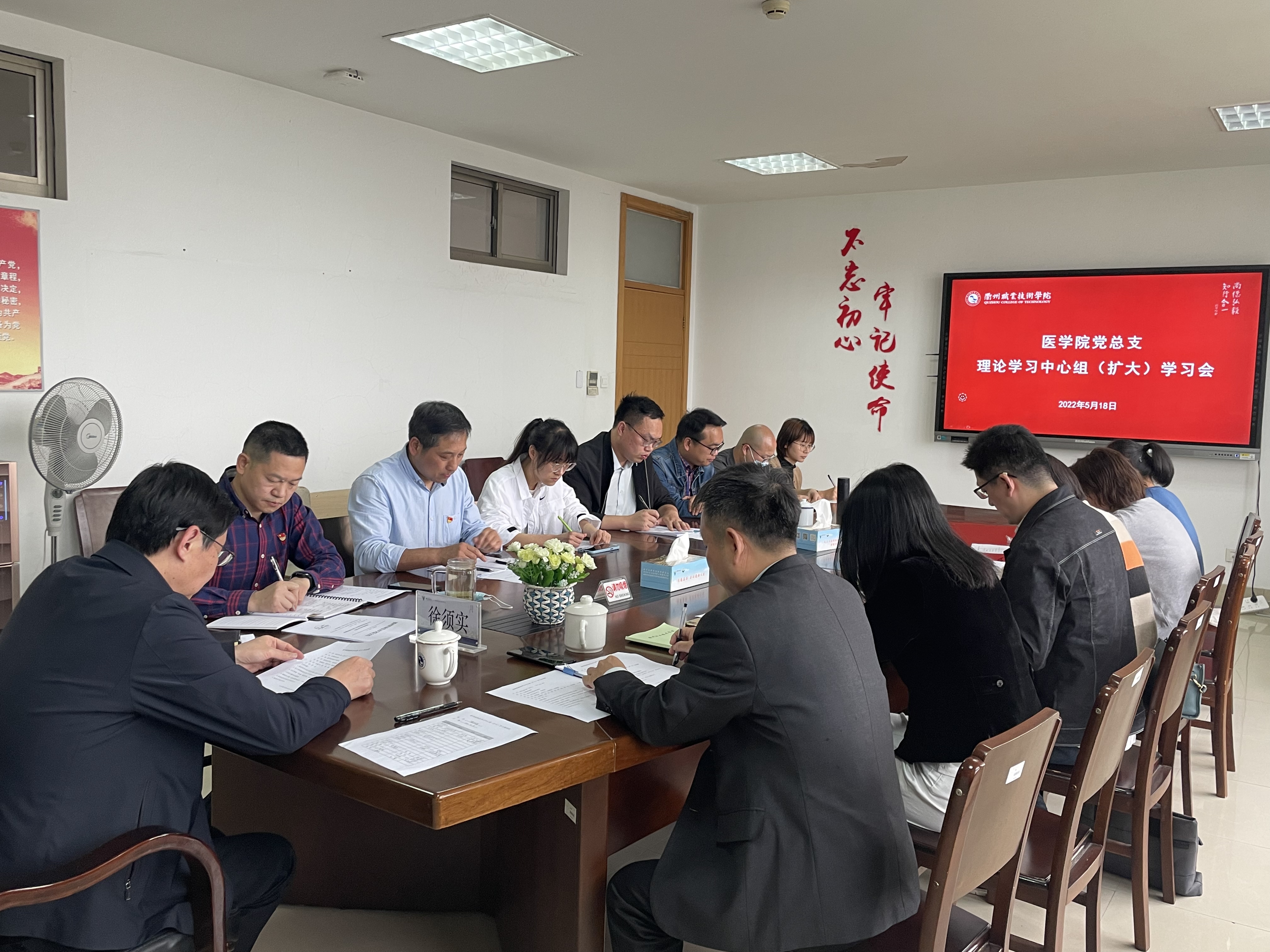 5月18日下午,医学院党总支召开理论学习中心组(扩大)学习会,中心组全体成员参会,邀请校党委书记徐须实巡听,综合办公室主任、学工办主任、支部书记及各教研室主任旁听,会议由党总支书记余文富主持。