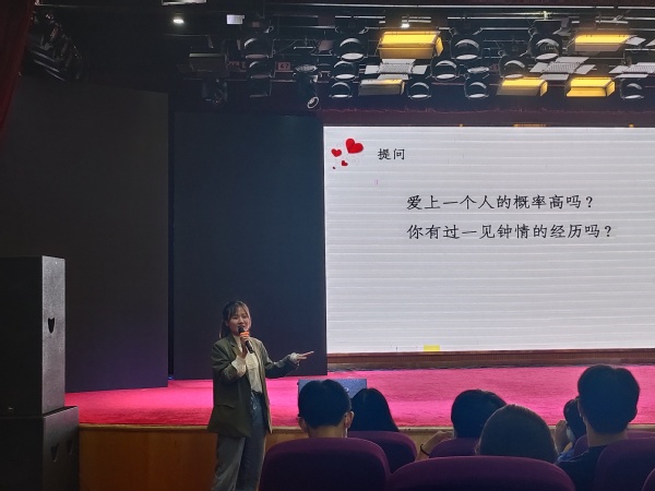 本次讲座引导同学们树立正确的恋爱观和择偶观,帮助大学生更好地完善自我、发展自我、善待自己、更好地对待爱情,理智处理关于恋爱方面的问题,通过共同的努力下给爱情一个美丽的未来。