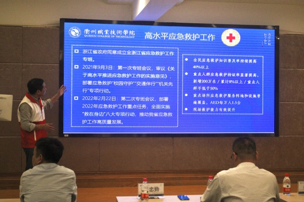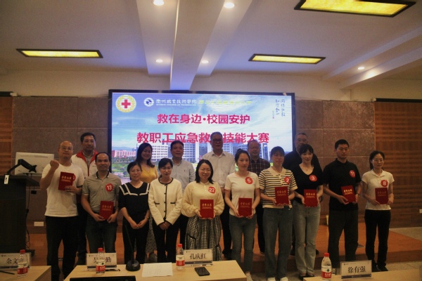 为普及医疗急救知识,提高我校教职工处理突发事件的能力,5月27日,江南网页版首届教职工应急救护技能竞赛在医学实训楼多功能厅举行。来自各分工会共22名教职工参加了比赛,衢州市红十字会救护培训师罗永翔、医学院副院长吴忠勤、医学院教师周敏、李良秀担任评委。校党委委员、宣传部长孔庆红出席活动。