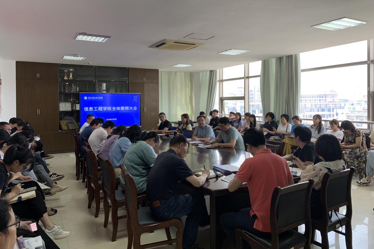 6月8日中午,信息工程学院召开全体教师大会,进一步部署期末和毕业等各项工作。信息工程学院院长马文龙主持,党总支书记林繁昌讲话,全体教师参加会议。