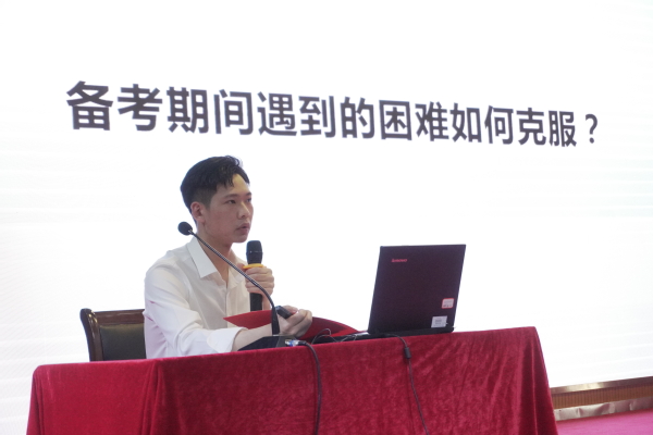 国家奖学金获得者、省优秀毕业生、本次以283分被中国计量大学知识产权专业录取的陈恩亮同学,则重点分享了他专升本的经历和学习方法。他向大家介绍了他备考时的学习策略,并提醒学弟学妹们要珍惜大学时光,踏实努力学习。