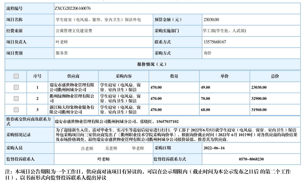 江南网页版学生公寓(电风扇、窗帘、室内卫生)保洁外包自行采购信息公示
