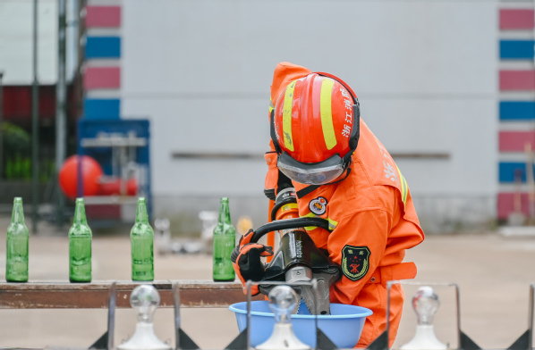 参观过后,在柯山消防救援大队院内,技术员为学生讲解一些消防器械的使用要领,并实践演练。大家认真听着精彩的讲解,观摩技术人员的标准操作,现场气氛十分活跃,学生们通通表示非常希望能到这里实习,感受消防员的责任与使命。