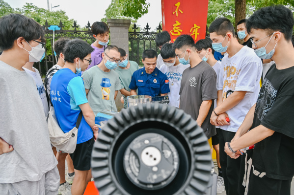 首先在消防支队负责人的带领下,学生们参观衢州市柯山消防救援大队,包括一些消防器械、训练基地、消防员宿舍、学习工作室、党建会议室等重要场所。在参观过程中,学生们一双双好奇的眼睛,目不转睛地看着讲解员,对这里充满了兴趣,时不时地提出问题。