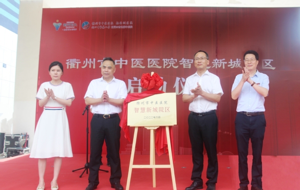 金仁康、徐须实、兰小芳、廖小方共同为衢州市中医医院智慧新城院区揭牌。