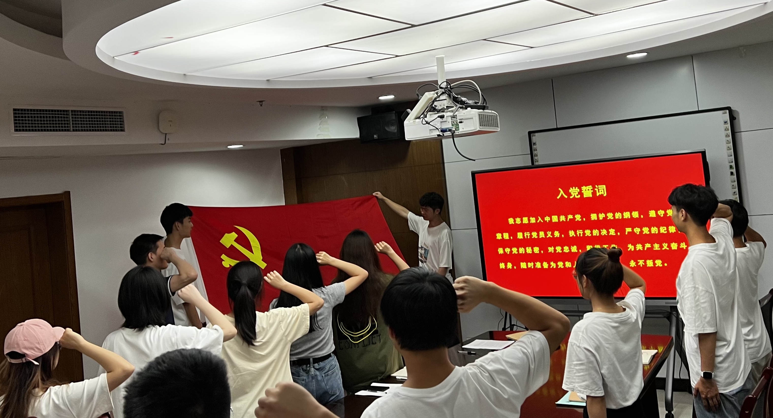 在场的学生党员在领誓人的带领下重温入党誓词,载着全体党员的昂扬志气,开启属于青年人的青春新篇章。