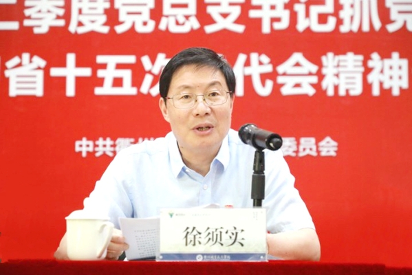 为深入学习贯彻省第十五次党代会精神,贯彻落实市委书记高屹来我校作省第十五次党代会精神宣讲讲话精神,全面推进我校“六治六提”作风建设工作走向深入,推动党建提升年各项目标任务顺利推进,6月29日上午,我校召开2022年第二季度党总支书记抓党建工作例会暨贯彻省第十五次党代会精神部署会。校党委书记徐须实,党委副书记、校长吕延文,党委委员、副校长何百通、余建军,党委委员、宣传部长孔庆红出席,党委委员、组织部长周帅主持。