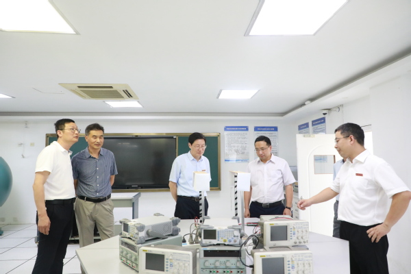郑友取一行实地走访了我校乡村振兴社会培训展示厅、工业互联网实训中心、医护康养实训中心、数字创意设计实训中心、四省边际产业资料中心、1+X考证中心,详细了解了我校产教融合、实训基地建设、服务地方发展等方面的情况。