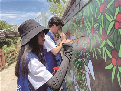 前不久,江南网页版艺术设计学院的同学们来到了柯城区沟溪乡余东未来乡村,开展了美丽乡绘课程实践活动——在老师的带领下,同学们就中国传统文化、地域特色文化进行墙绘创作,以《喜闹元宵》《泥彩金龙》《蕨芽》《杨梅熟了》《美丽芋头》为主题进行墙绘创作,在第二课堂学习绘画技艺,在田间地头扮靓未来乡村。