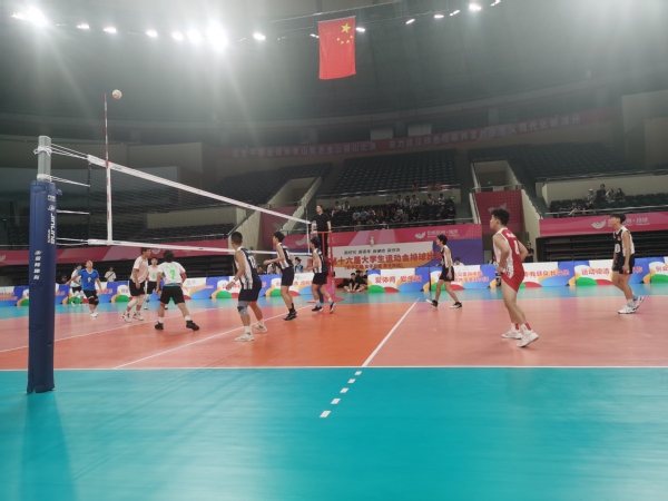浙江省大学生运动会四年一届,是省内最高水平的大学生体育赛事。在本届小组赛中,我校男排均已2:0的成绩接连战胜嘉兴南洋职业技术学院、育英职业技术学院、杭州职业技术学院、杭州科技职业技术学院,以小组第一的成绩闯入决赛。决赛中,我校男排开局不利,赵小龙老师利用短短的局间时间把队员拢在一起,点出问题所在,鼓励队员调整心态,最终2:1的成绩反败为胜,赢得本届赛事的冠军。