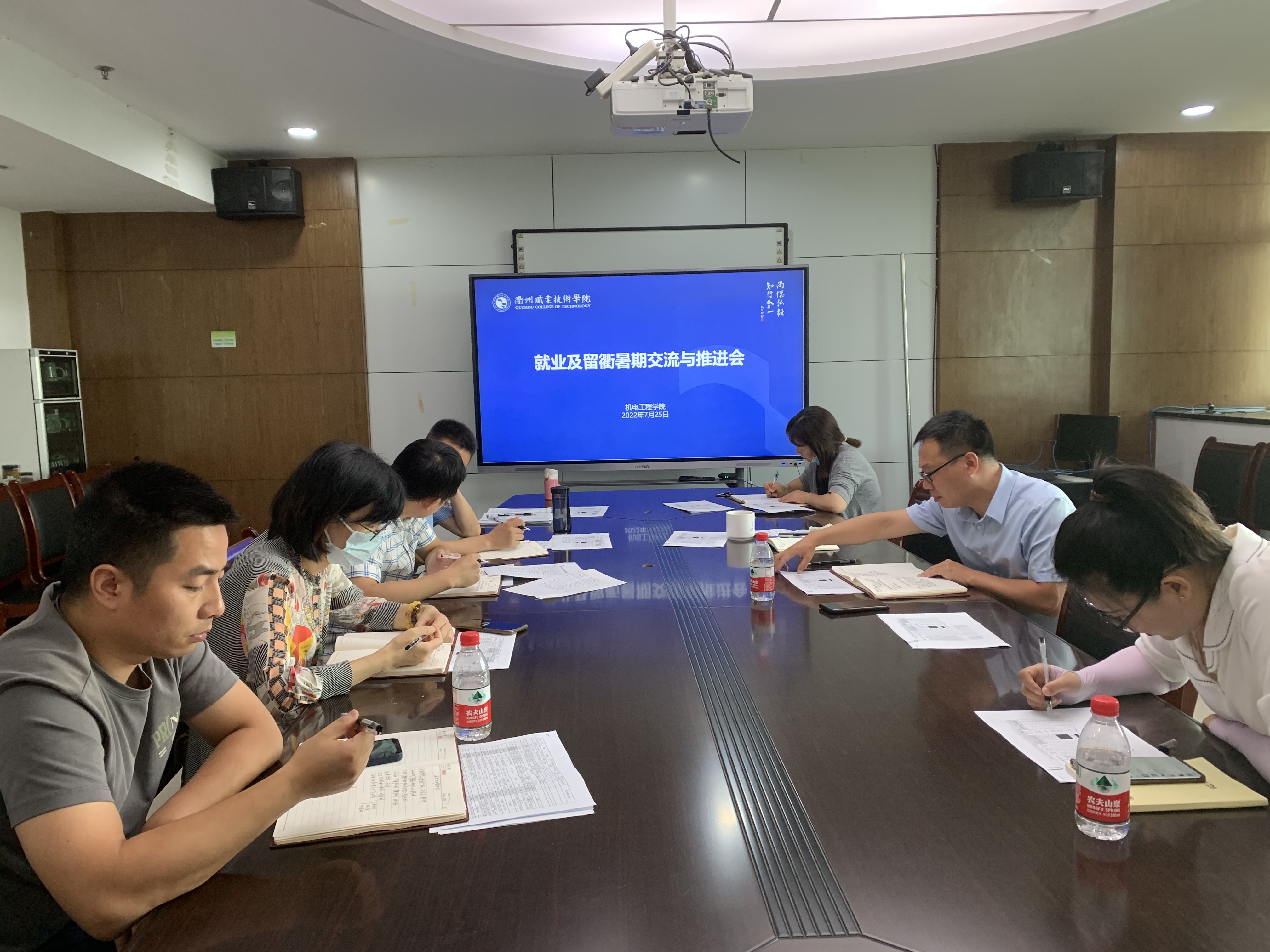7月25日上午,机电工程学院在机电307会议室召开就业及留衢暑期交流与推进会,学院领导班子成员、教研室主任、毕业班班主任参加会议,会议由党总支书记朱峻主持。