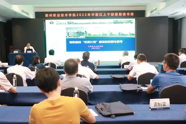 国家督学、全国高职高专校长联席会议主席、原天津职业大学校长、二级教授董刚应邀为我校中层以上干部作了主题为《高职院校“双高计划”建设的实践与思考》的职业教育专题讲座。校党委书记徐须实,党委副书记何百通,党委委员、纪委书记方焕云,党委委员、副校长余建军、徐浪静、姚水洪,党委委员、宣传部长孔庆红,党委委员、组织部长周帅及全体中层以上干部共同聆听了本次讲座。党委副书记、校长吕延文主持。
