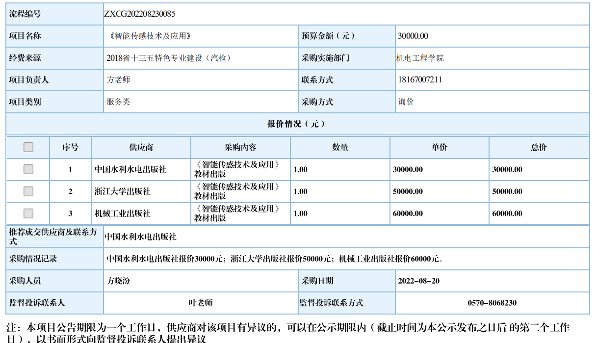 江南网页版《智能传感器技术及应用》项目自行采购信息公示