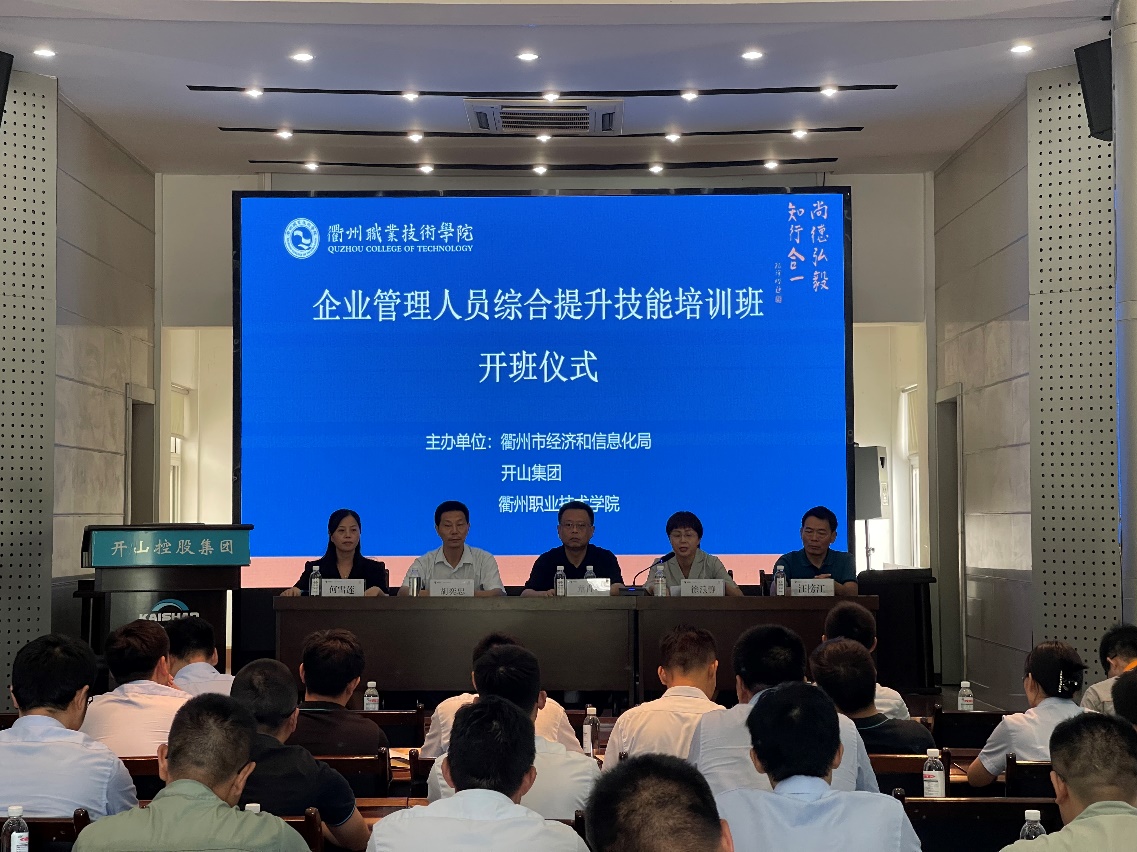 8月15日,由我校经济管理学院和衢州市经济和信息化局联合举办的项目制培训——企业管理人员综合提升技能培训班(第一期)在开山集团正式开班。本次企业项目制培训根据企业的需求定制个性化课程,以提高企业管理人员的综合技能。党委委员、副校长徐浪静,衢州市经济和信息化局副局长章青华,开山控股集团常务副总裁胡奕忠、经济管理学院院长汪榜江和副院长何雪莲出席了本次开班仪式。