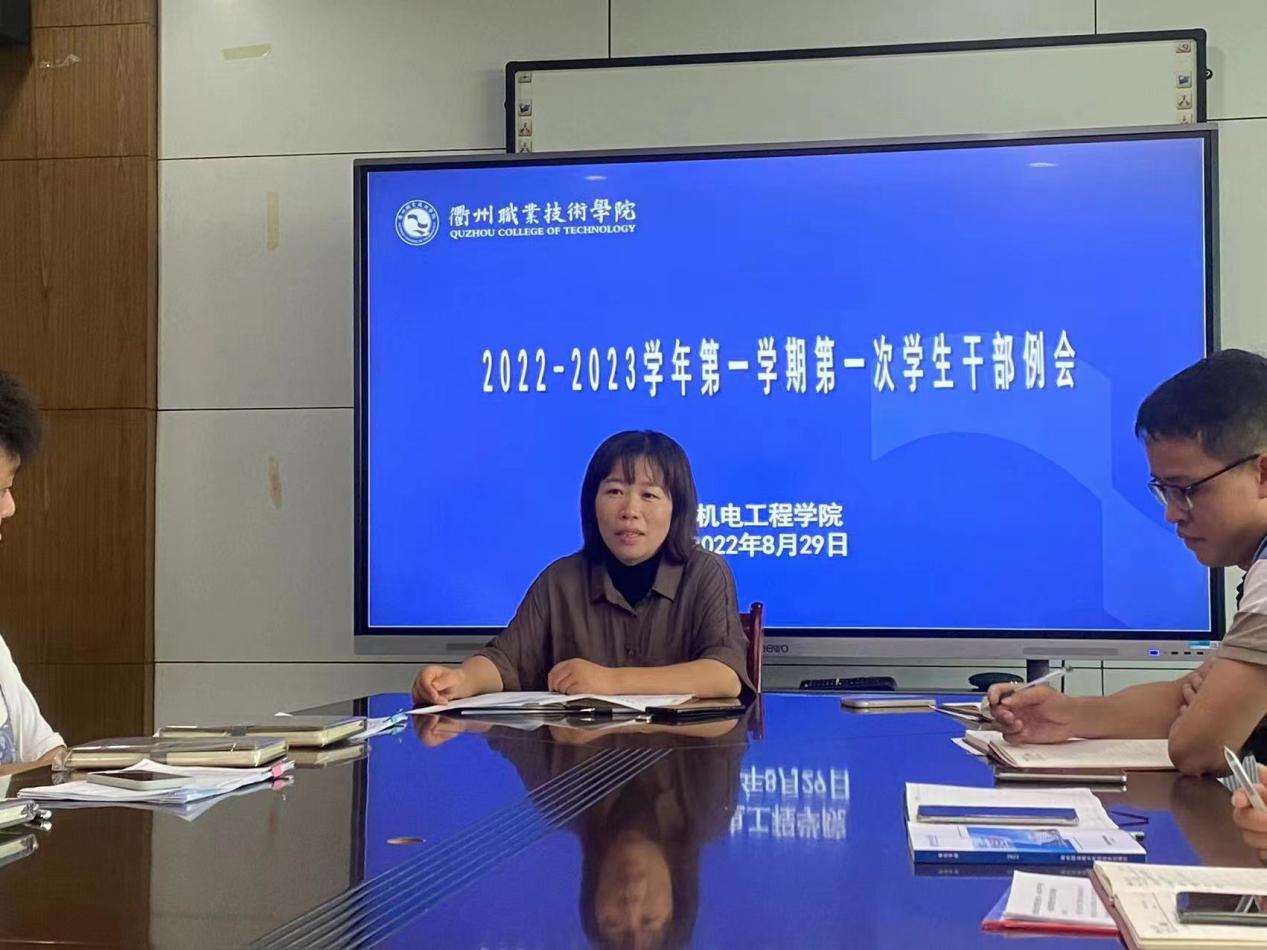 新学期,新气象,新征程,新未来。为切实提升学生干部的服务意识和管理意识,充分发挥学生干部的引领作用,更好推动本学期工作进展,机电工程学院于8月29日在机电大楼307会议室召开了本学期第一次学生干部例会。机电工程学院党总支副书记叶云霞、全体辅导员,以及各班班长和院团委学生会委员参加了本次例会。