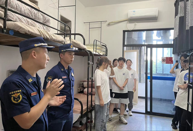 消防指战员深入学生寝室,详细讲解寝室消防安全的注意要点,强调不能使用违规电器、不携带易燃易爆物品、不随地丢弃烟头等。指战员也对寝室内务的整理进行了讲解和展示。文化旅游学院休闲体育党支部书记王俊舰老师邀请消防员到攀岩场进行攀登体验。