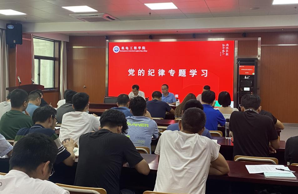 为深入贯彻习近平总书记关于党的纪律和规矩重要论述,持续推进全面从严治党向纵深发展,强化警示震慑效应,持续加固中央八项规定堤坝,营造风清气正的节日氛围。9月7日,机电工程学院开展党的纪律专题学习,会议由机电党总支书记朱峻主持,机电工程学院全体教职工参加。