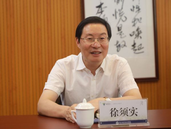 徐须实汇报了近年来学校发展情况,重点围绕推进“双高”院校建设、提升服务地方发展水平、推进产教深度融合、开展中高职一体化探索和实践等方面作了汇报。