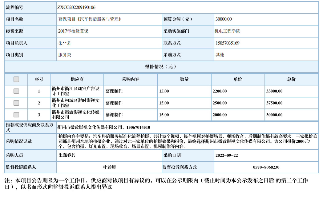 江南网页版慕课项目《汽车售后服务与管理》自行采购信息公示