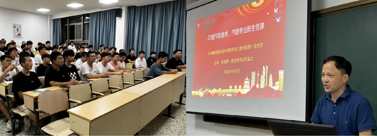 为宣传党的政治主张,深入思想政治教育工作,2022年9月机电工程学院各党支部按照学校要求推行“入学第一课”制度,并结合“喜迎二十大”主题系列活动,将讲党史、讲革命传统、讲党的基本理论和基本知识纳入新生始业教育。