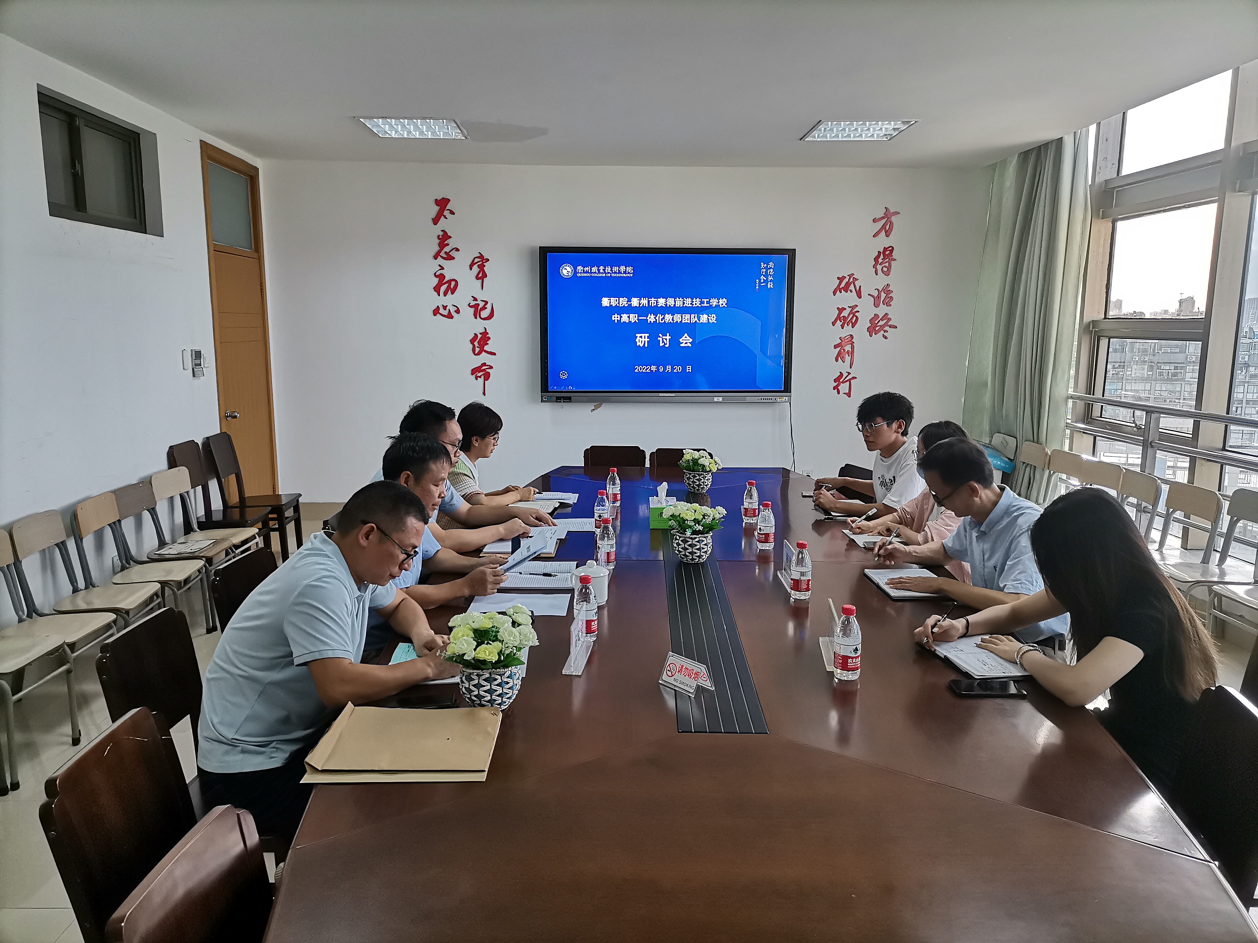 赖建斌校长首先就衢职院---赛得前进技工学校中高职一体化教师团队建设提出初步方案,希望我校教师团队在“中高职一体化专业规划、护理教师的培养、理实一体化教学、衢州市大健康产业调研和用好赛得健康集团资源”等五方面予以指导、合作,双方成员都作了发言,提出建设性意见和建议。