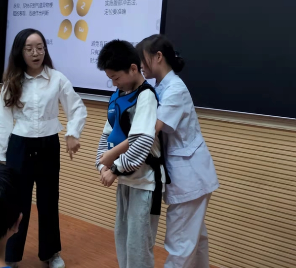 第二场科普讲座中,医学院的杨晓婷老师围绕“海姆立克急救法”,以情景模拟剧的形式,为同学们演绎了一场别开生动的急救技能分享。