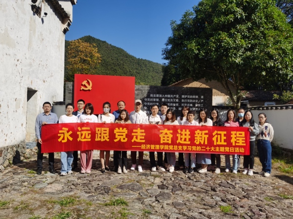 为激励教师党员弘扬革命传统,学习贯彻好党的二十大精神,动员广大教师党员切实把思想和行动统一到党的二十大精神上来,把力量凝聚到实现党的二十大确定的目标任务上来,经济管理学院党总支组织全体教师党员前往龙游县长生桥红色革命教育基地开展“永远跟党走 奋进新征程”主题党日活动。