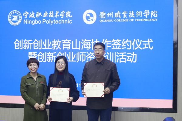 仪式上,双方签署两校创新创业教育山海协作协议,并聘请宁波职业技术学院许彦伟、周莉莉两位老师为我校创业导师。接着,许彦伟和周莉莉分别以《任务型课程设计与实施——以<创新创业基础>为例》、《<BIM应用基础与设计实践>“专创融合”课程建设与实践》为主题,为我校全体创业课授课教师代表和专创融合项目负责人开展创新创业师资培训。
