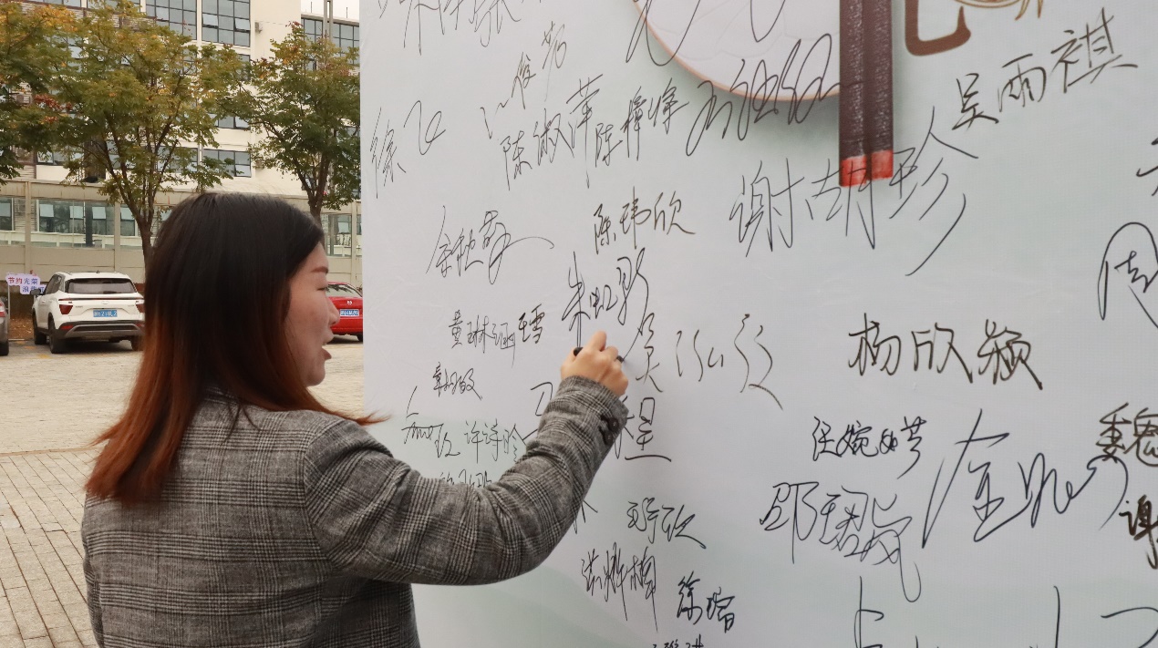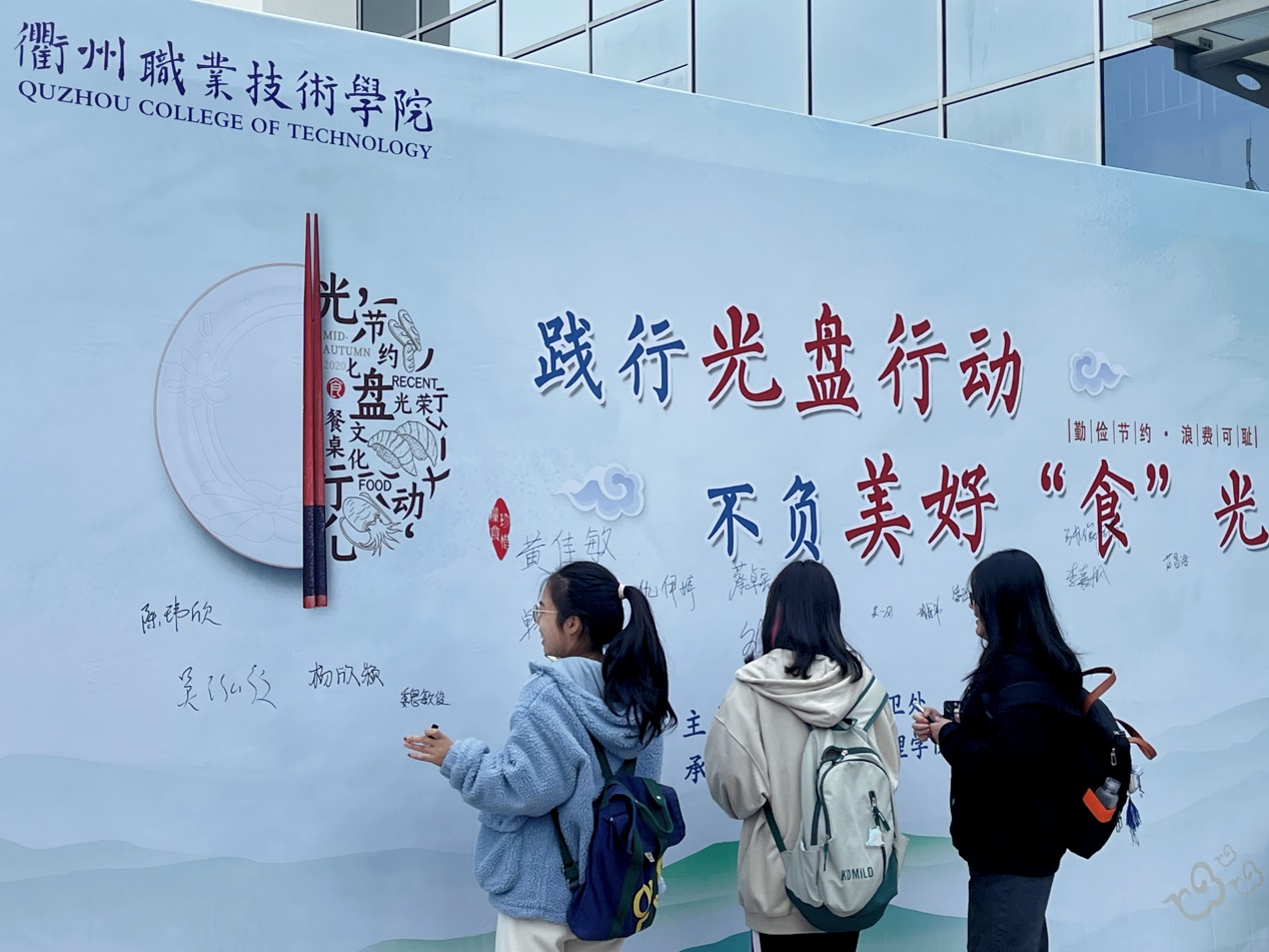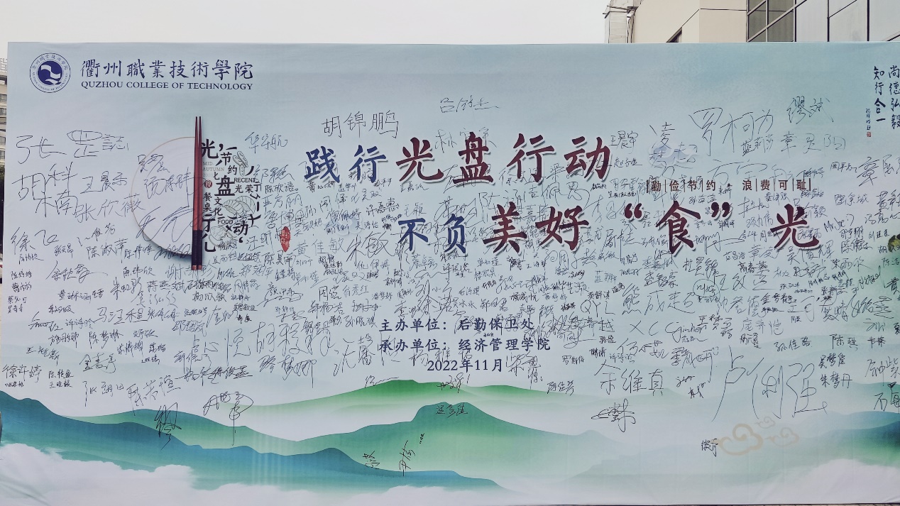 1.签名墙活动:勤俭节约筑美德,光盘行动扬美名。老师和同学们在签名墙签下自己的名字,迫不及待地想记录下这美好时刻,留下属于自己的光盘之“名”,争做追“光”者。