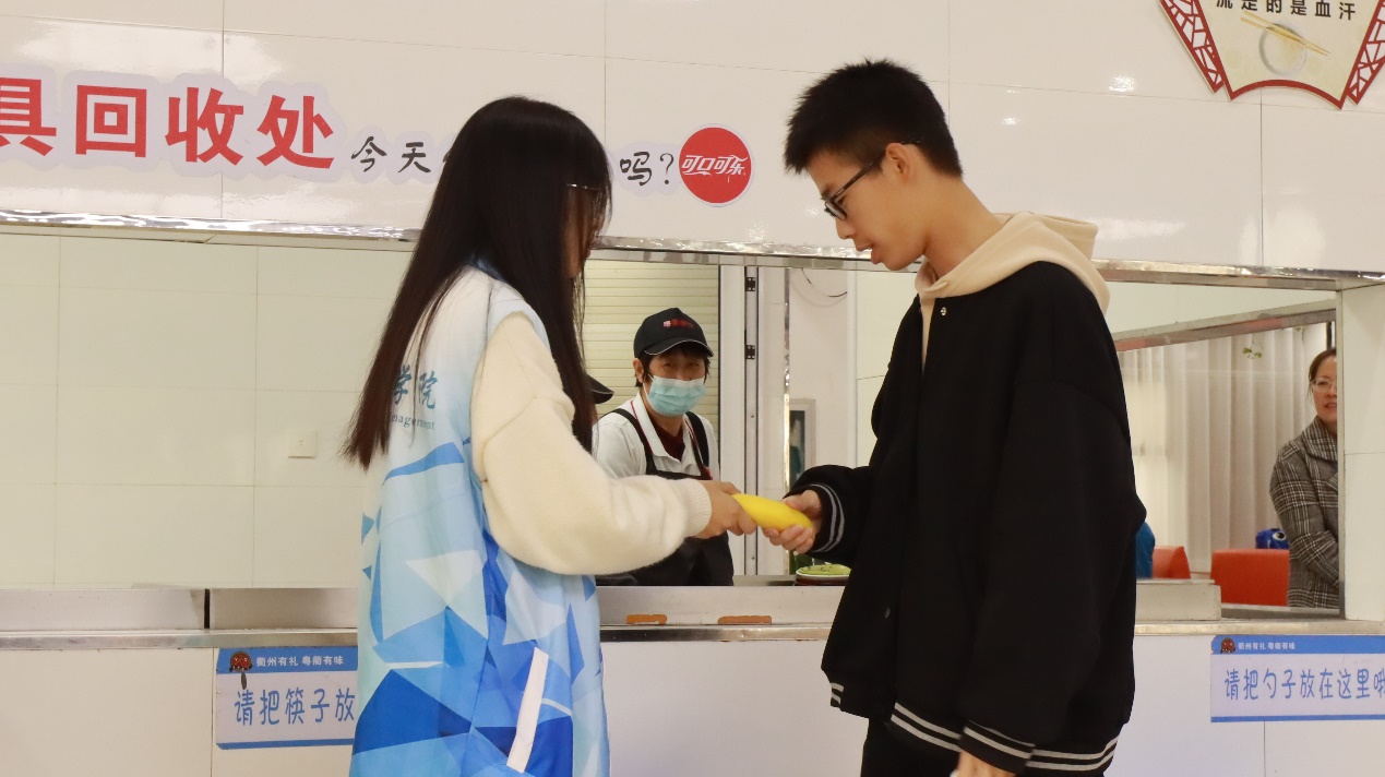 —粥一饭,当思来处不易;半丝半缕,恒念物力维艰。为弘扬中华民族勤俭节约的传统美德,避免舌尖上的浪费,培养广大青年的勤俭节约意识,引导同学们进一步养成珍惜粮食的生活习惯,11月16日中午,经济管理学院联合学校后勤保卫处开展“践行光盘行动,不负美好‘食’光”主题活动,培育崇尚节约的校园文化,倡导健康文明的生活方式和消费理念,让同学们养成良好的就餐习惯,积极参与到“光盘行动”活动中来。