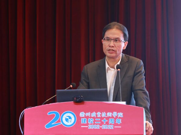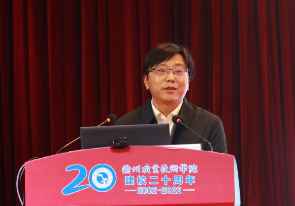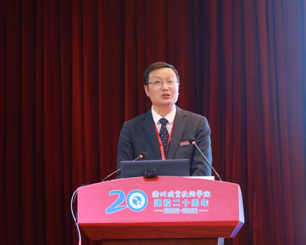 徐时清做《职业教育高质量发展背景下校企共同体迭代升级的思考与实践》的主旨报告。