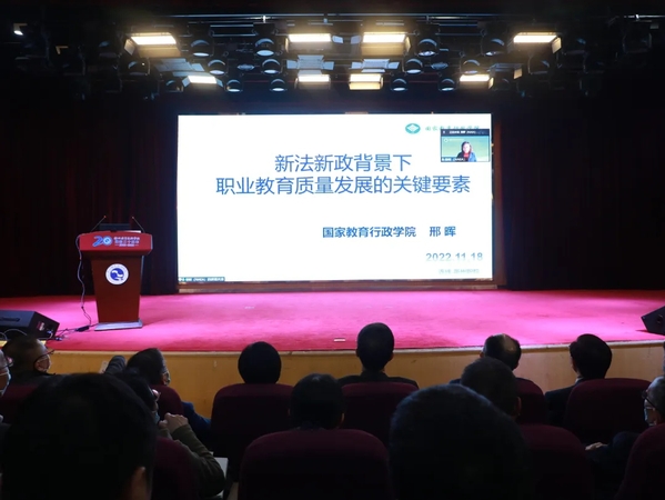 邢晖做《新法新政背景下职业教育内涵建设的关键要素》的线上主旨报告。