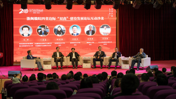 主旨论坛后,举行了四省边际浙闽赣皖“双高”建设发展论坛互动沙龙。胡野、丁金昌、徐时清、吕延文、舒明祥、苏勇强、刘义国等七位专家围绕新时期产教融合、校企合作这一永恒话题开展互动交流,在观点碰撞中引领思想,激发思考,也为线上线下参会人员开展了一场生动的辅导报告。