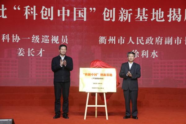 姜长才和徐利水共同为“科创中国”创新基地揭牌。