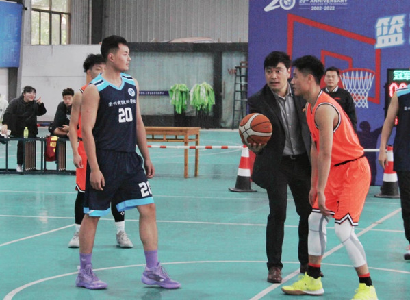 参赛双方分别是由在校学生组建的冠军队和由在校教师、毕业生组成的校友队。双方都以满分的精神面貌和昂扬向上的状态走上赛场,比赛由文化旅游学院院长郭大勇为双方跳球,正式拉开比赛帷幕。