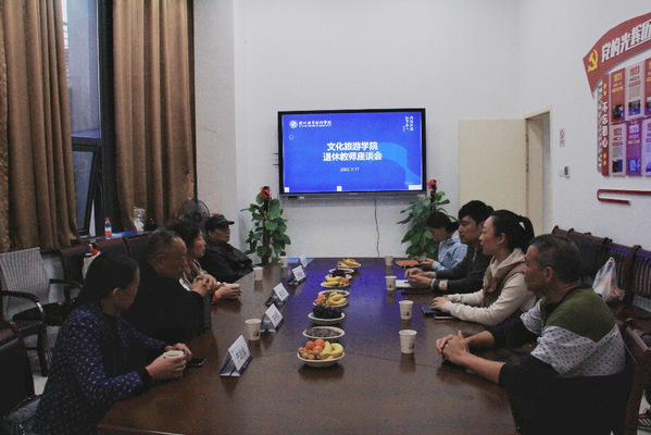 献礼结束后,文化旅游学院院长郭大勇、党总支书记李威、副院长黄志国、公共体育部课程组长彭晓倩、办公室主任潘乐与退休教师们在文化旅游学院会议室中围桌座谈。退休教师们祝福学校、学院越办越好,为三衢大地的教育事业添砖加瓦、再铸辉煌。