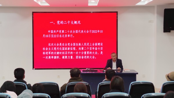 11月23日下午,校党委副书记何百通为艺术设计学院、公共教学部教师作党的二十大精神专题宣讲。艺术设计学院、公共教学部全体教职员工参加。