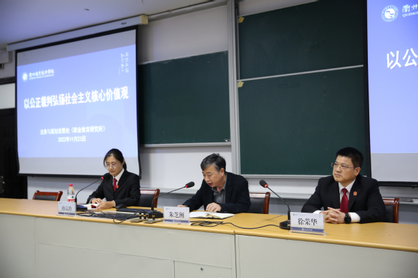 依法治校是推进法治中国建设的重要内容,也是高等职业院校完善治理体系、提高治理能力的理性选择和必由之路。为帮助教师深入了解《民法典》实施的重要意义和内涵,提升教师的法律素养,11月24日下午,法务与规划发展处(职业教育研究所)邀请衢州市柯城区人民法院孙宗玲法官为我校教师作《以公正裁判弘扬社会主义核心价值观》的主题讲座,徐荣华副院长做交流指导。