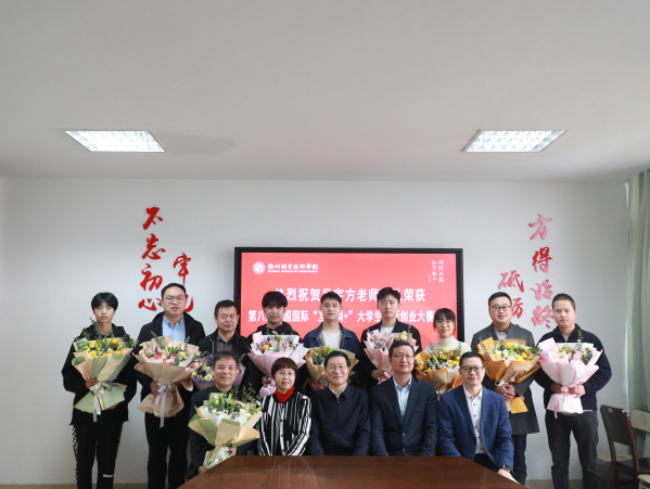 徐须实、吕延文代表学校向获奖师生表示热烈祝贺并献花合影留念。